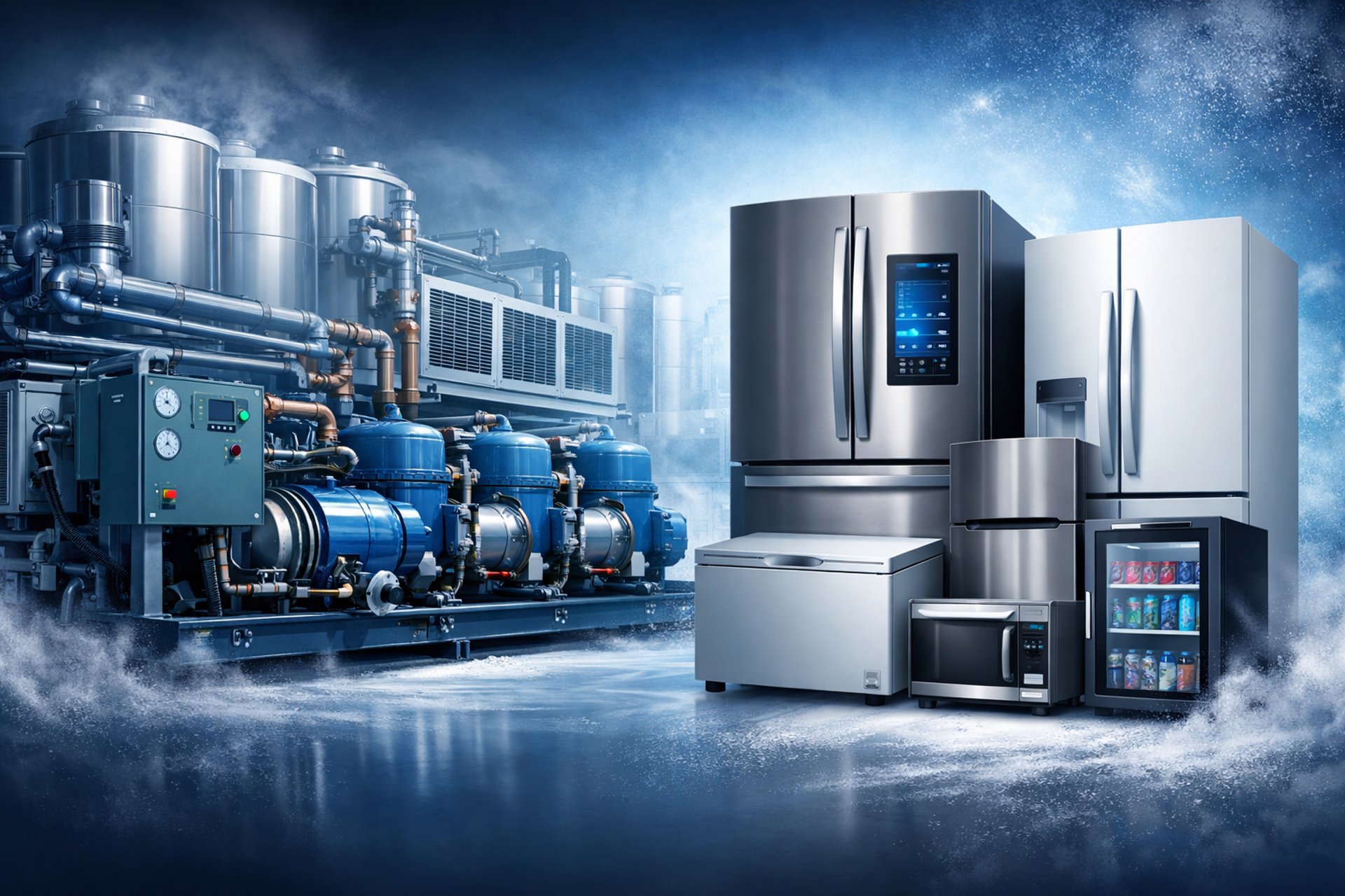 Conserto e manutenção de sistemas de refrigeração industrial e comercial.